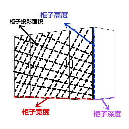 第二種:按投影面積算,所謂的投影面積就是指柜子的正面面積,也就是柜子寬度*柜子高度=柜子投影面積,深度為商家根據(jù)柜子的實(shí)際作用來標(biāo)配。按投影算的柜子一般都是柜體和柜門分開算,柜體按投影算,柜門按實(shí)用柜門平方來算。常用于衣柜、酒柜、鞋柜等大面積大容量柜子。具體算法如下: