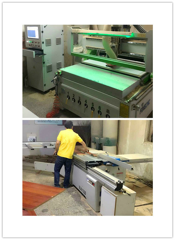 從簽訂正式合同下單開始,整個的流程有:設(shè)計(jì)師復(fù)尺寸——車間師傅拆板,核對板材數(shù)量——數(shù)控鋸裁板——封邊機(jī)封邊——打孔機(jī)打孔——安裝預(yù)埋件——預(yù)裝——打包入庫——發(fā)貨安裝。