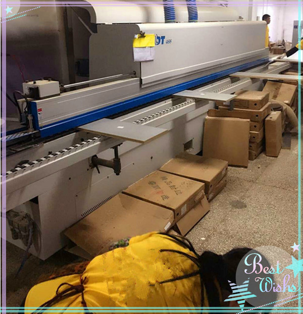 第三步是裁板。這一步就比較重要了!裁板的時候好能親自去工廠看一下,跟工廠簽合同簽的是什么樣的板材,什么樣的環保等級要看清楚的。特別是環保等級,好要看清楚標志,看著師傅把板裁完,那樣就不會有錯了,因為定制家具的板材都是根據你們家柜子的尺寸來裁的,而且哪家都不一樣,所以廠家裁完的板只能用來做你們家的家具。然后就是裁板機了,一般家具廠都采用手推鋸和數控鋸來裁板,毋庸置疑,肯定是數控鋸精度要更高了。正常公差都是控制在50絲以內的,50絲以內的公差用在柜體板上還是可以接受的!正規的家具廠每塊柜體板上還會貼客戶的專屬信息,那樣更不容易出錯,也方便批量生產!