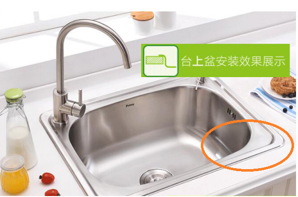 先說好理解的臺上盆,臺上盆安裝方便,后期出問題之后維修也方便;水槽下面留的空間能比臺下盆高3公分左右。只是后期使用中打理起來不太方便,水槽邊和臺面接觸的位置是打玻璃膠封閉的,如果衛生保持的不好,時間一久玻璃膠容易發霉、變黑、水槽翹角、順著縫隙漏水到櫥柜里。