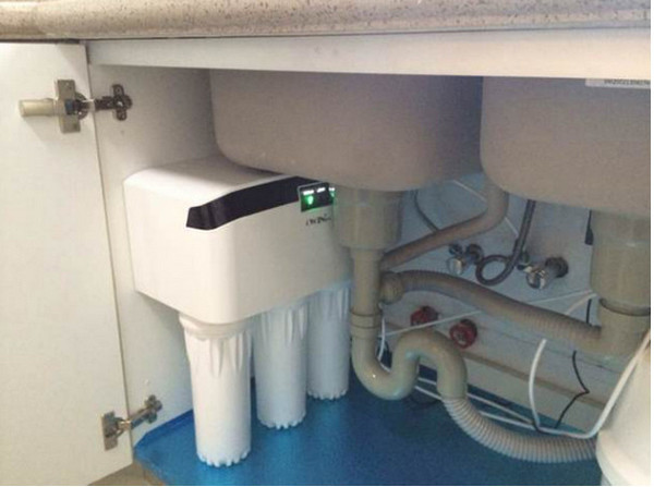 柜子里的空間本來不大,2~3厘米的重要性就顯現出來了,根據不同家庭對櫥柜要求的不同,柜子里面空間的高度在62~72厘米之間。所以一旦定下來做臺下盆之后,還要想好做不做凈水器,做的話用什么樣子的。如果用下圖這樣的凈水器就可以不用考慮高度的問題。