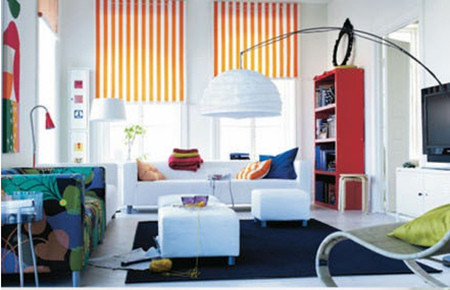 朝東的房間早曬到,日光也早離開,而使房間較早變暗,所以使用淺暖色是比較好的。朝南的房間日照時間長,使用冷色常使人感到更舒適。朝西的房間由于受到一天中強烈的日照的影響,可用深冷色。朝北的房間沒有日光的直接照射,所以選用暖色,且色度要淺。
