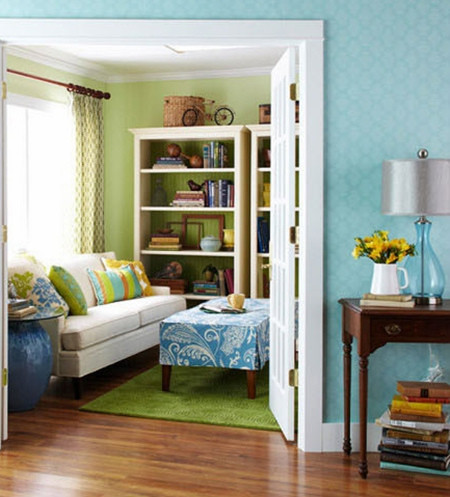 顏色能在一定程度上改變人們對房間形狀的感覺。例如冷色可使較低的天花板看上去變高,使狹窄的房間變寬。在房間遠端墻上用深色度的顏色,會使那堵墻產生前移的效果。