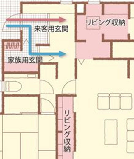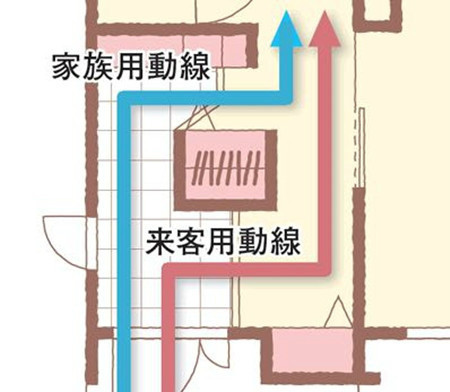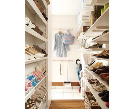 玄關的流線設計:家人和客人的流線分開,并設置不同的鞋柜收納空間