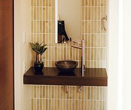 特別是對于養著寵物的主人來說,回家進門能洗手也是非當貼心的設計。在玄關設置一個有設計感的洗手池如下:
