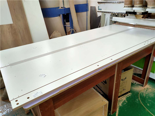 開始制作啦!專業(yè)設(shè)備裁板,沒有爆邊。板材使用平安樹實(shí)木多層板E0級制作,有高級的藍(lán)光防偽標(biāo)識哦,