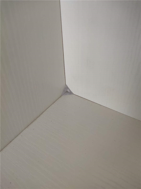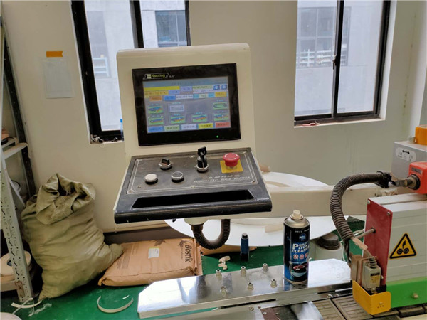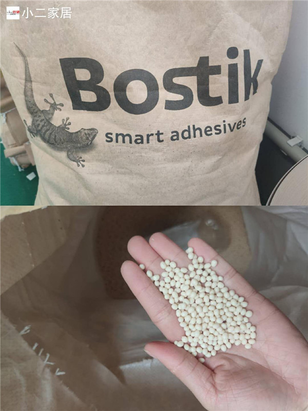 膠水采用美國波士熱熔顆粒膠,夏天溫度比較高,當(dāng)設(shè)備溫度達(dá)到160℃就好開始封邊了。我家不管大小板都是四面封邊哦!
