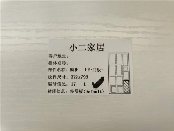 每塊板上都貼有小標(biāo)簽,方便后期安裝師傅安裝,封邊條上都帶有“優(yōu)端”logo的哦!方便后期售后服務(wù)。