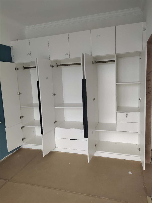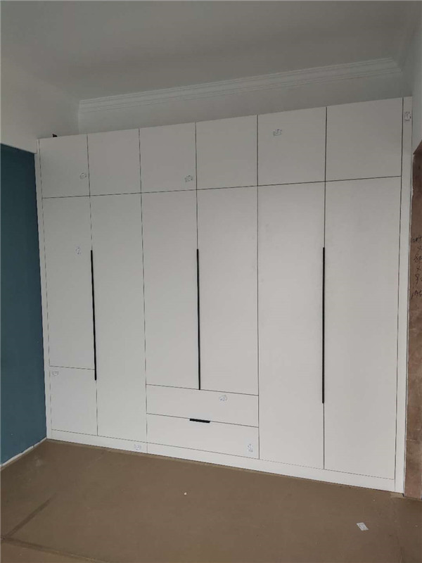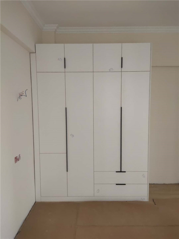 柜子的整體效果出來了,業(yè)主家門板均采用白色,搭配黑色&金色拉手,簡潔大氣。