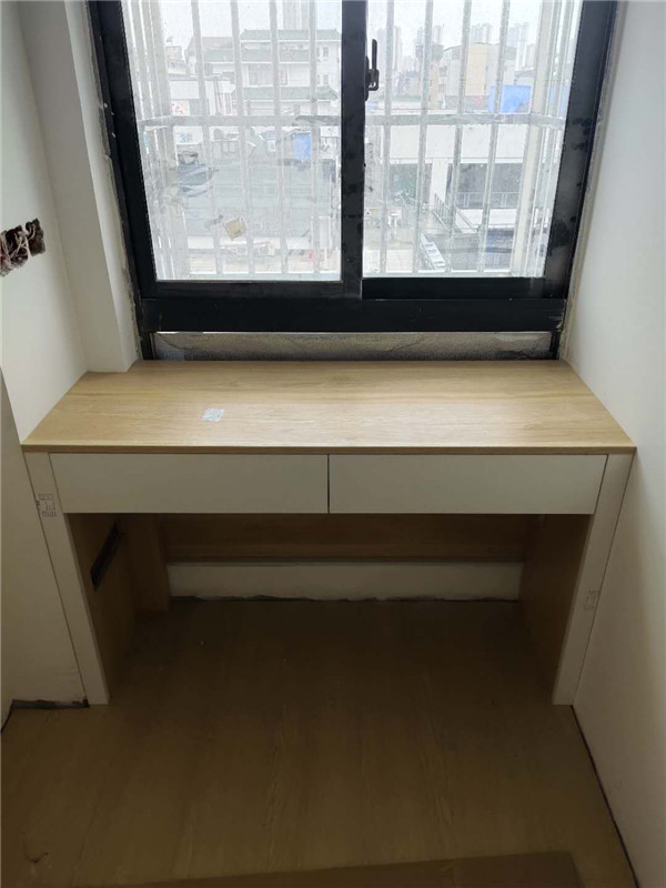 櫥柜拉籃諾米銀爵拉籃三件套,水槽下面都鋪有錫紙的。書桌靠近窗戶采光也是一級棒的。