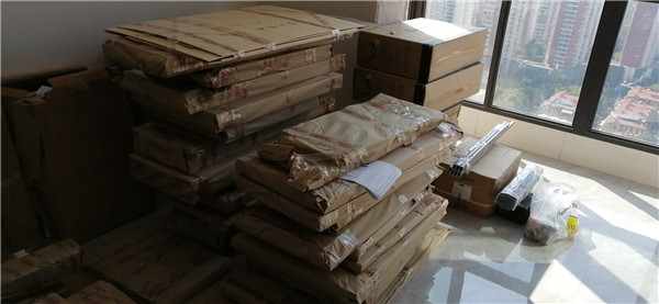 貨已安全送到客戶家了,5天內安排師傅上門安裝哦。安裝階段請您把您家需要用到的廚房水槽、灶具、浴柜臺盆放置在現場,