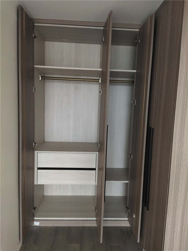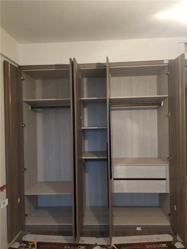 柜子已經全部安裝好啦!整體顏值堪稱完美,柜子的各個細節都必不可少呢!櫥柜用的磨砂晶鋼門,看起來特別有質感。進口雙飾面的衣柜,顏色以淺色為主,干凈而清爽!