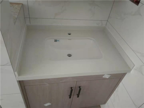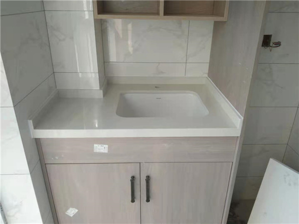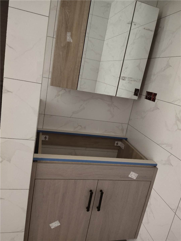 浴柜臺盆放置在現場,后期臺面安裝需用到。柜子安裝好后進入臺面測量環節,臺面量完后一個星期內送貨并安裝。