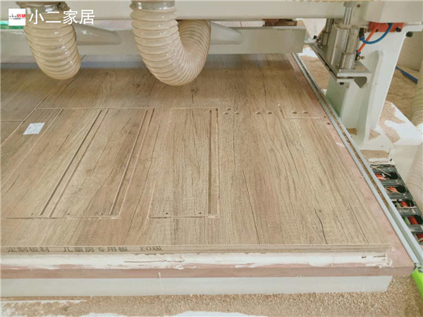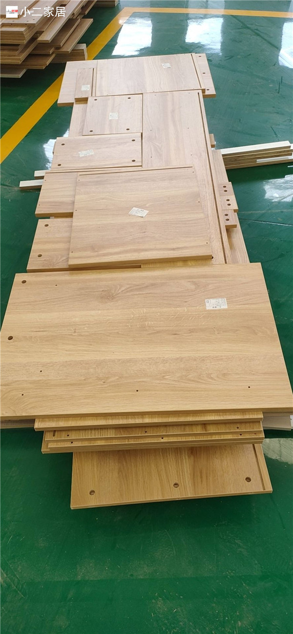 開始制作啦!專業設備裁板,沒有爆邊。板材使用平安樹實木多層板E0級制作,有高級的藍光防偽標識哦,邊口都是直的,