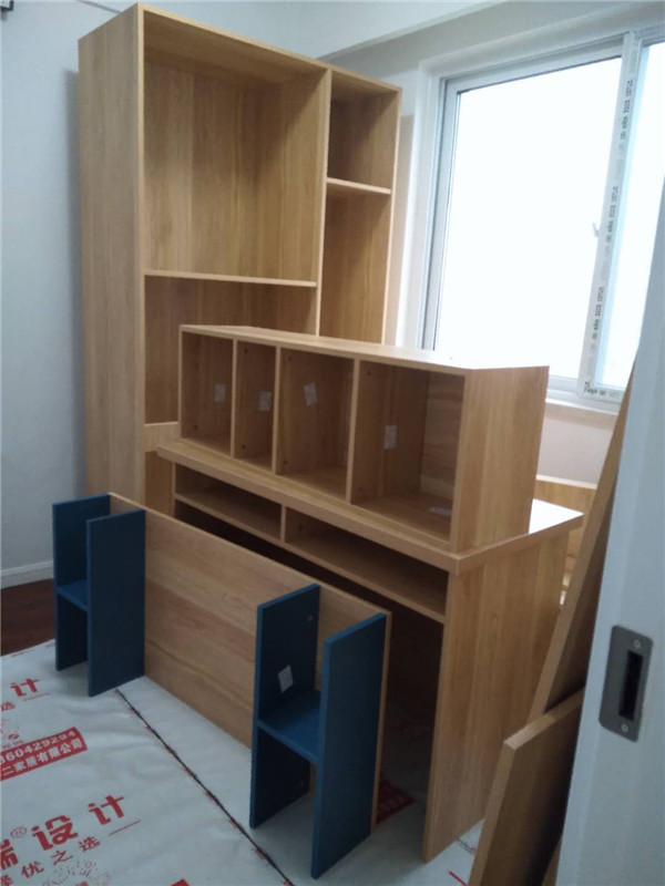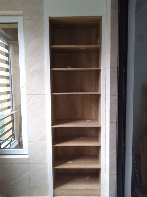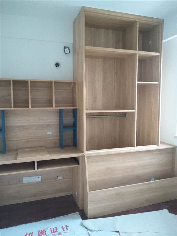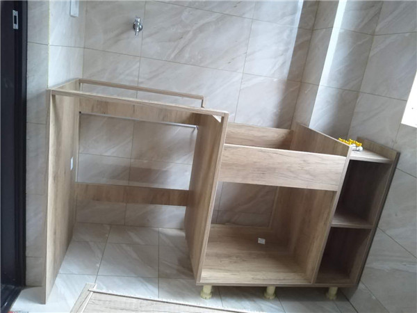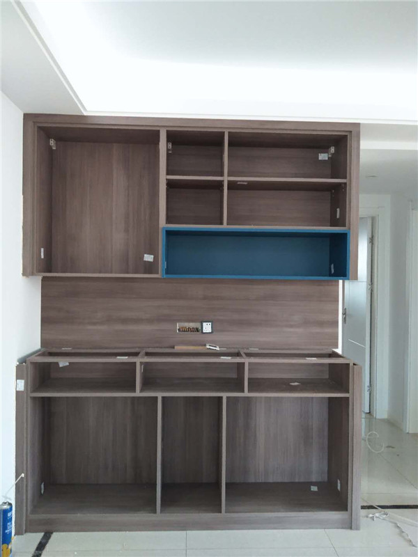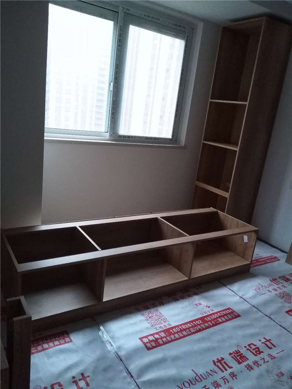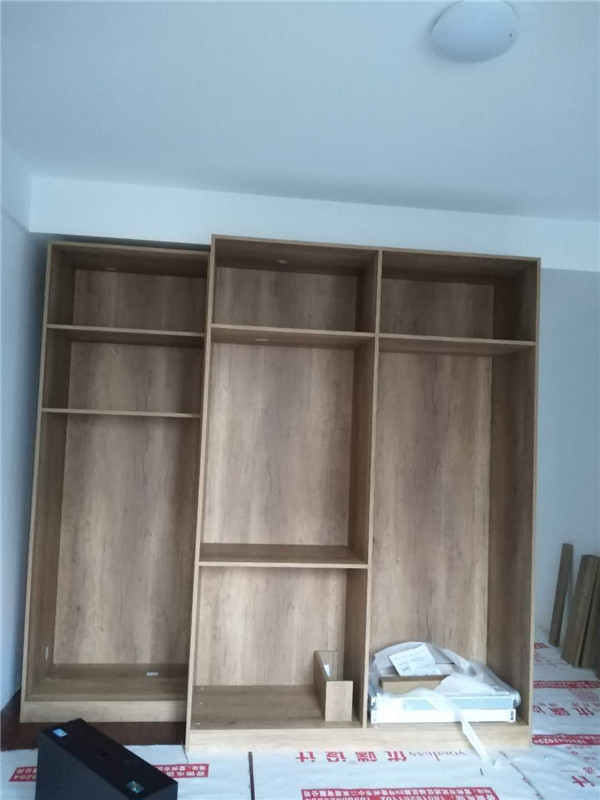 柜體大部分已拼裝完畢,柜體采用原木色給人一種非常舒適的感覺。