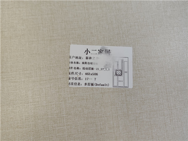 每塊板上都貼有小標簽,方便后期安裝師傅安裝,封邊條上都帶有“優端”logo的哦!方便后期售后服務。