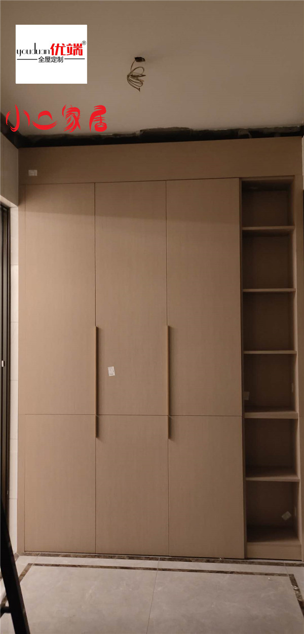 柜子安裝完畢了,業主家門板都是一門到頂的,搭配的是極簡長拉手,整體效果簡約大氣。長書