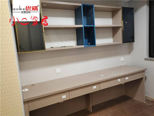 北房間的書桌采用加厚的臺面看著更大氣,加上上柜金框灰玻門的點綴,感覺整個房間都給人帶來不一樣的感覺!