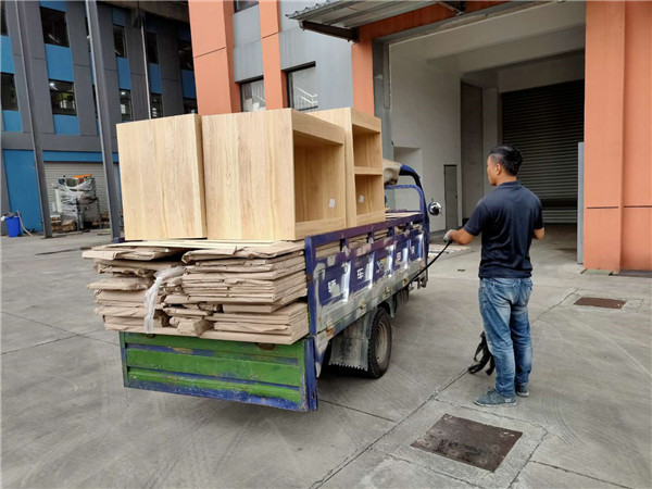 封邊完畢,進入打包環節,我家柜子板材都是整個包起來的,以防運輸過程中