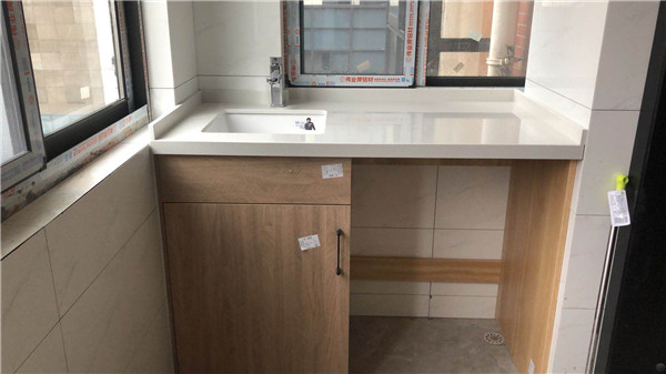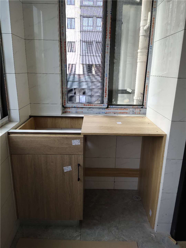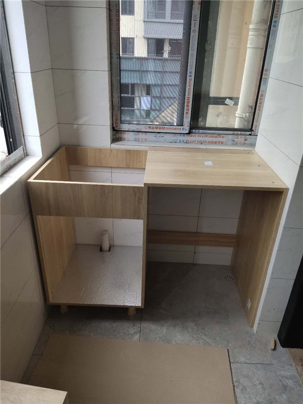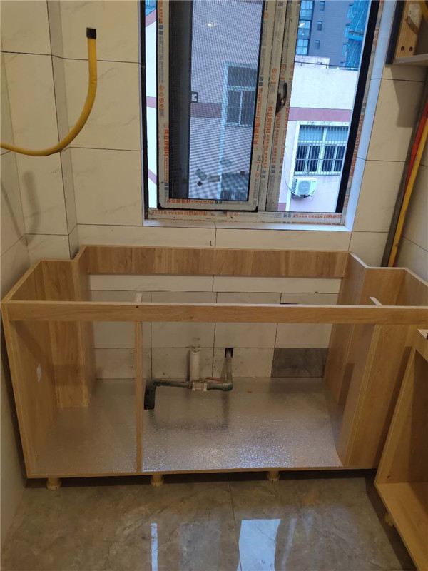 要用到的廚房水槽、灶具、浴柜臺盆放置在現場,后期臺面安裝需用到。柜子