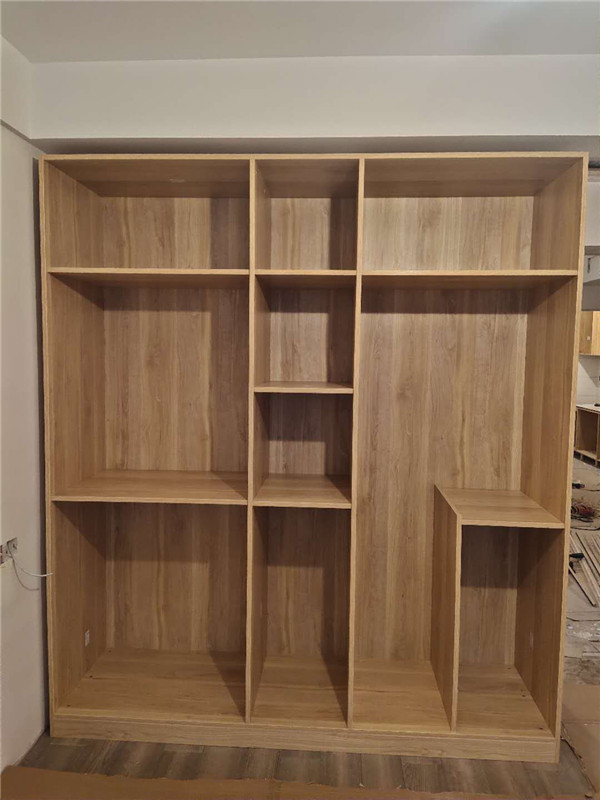 安裝師傅兩天的勞動成果,柜體基本拼裝好了,業主家采用的是原木色柜體,給人一種自然、質樸、素雅的感覺。期待柜門安裝后的效果。