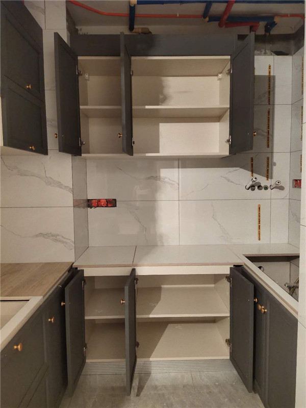 灶具、浴柜臺盆放置在現場,后期臺面安裝需用到。柜子安裝好后進入臺面測量環節,臺面量完后一個星期內送貨并安裝。