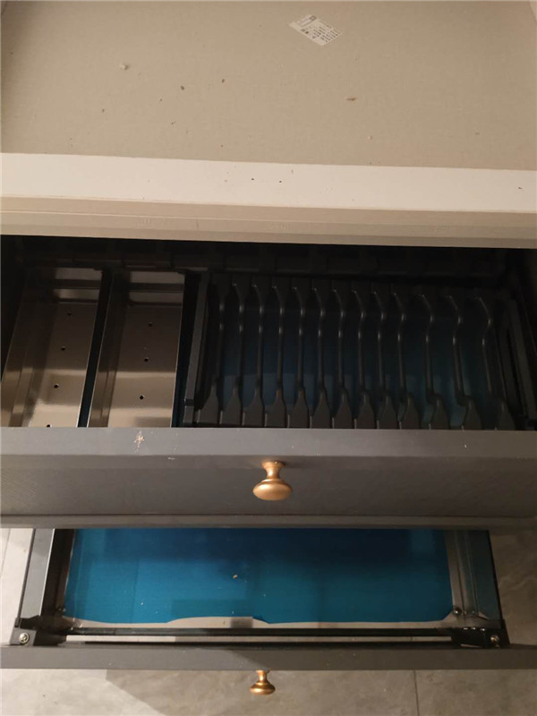 邊口都是直的,沒有爆邊的情況,這樣后面封出來的邊更圓滑,全自動機器開料尺寸更精準。插槽背板離墻面1.7公分,
