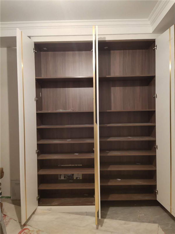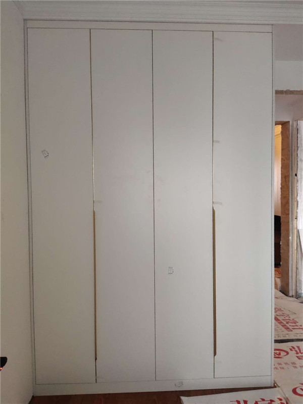 封邊完畢,已進入打包環節。柜門師傅會用柏油清洗劑全部擦拭一遍,以保證裝到客戶家整潔美觀。