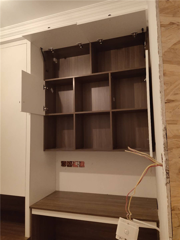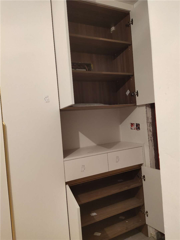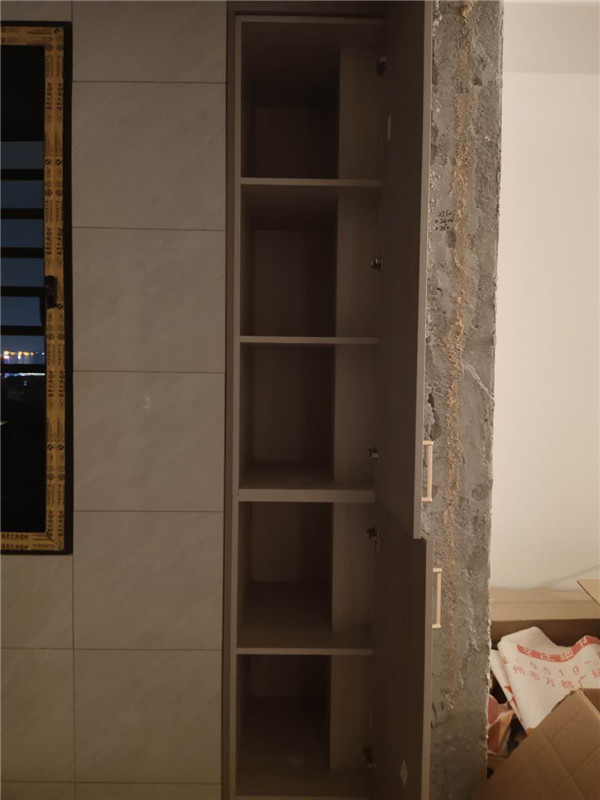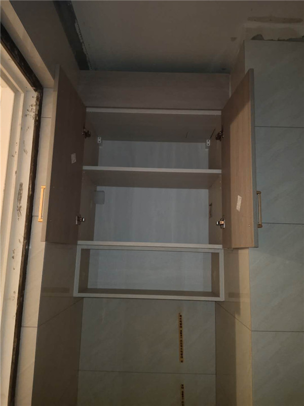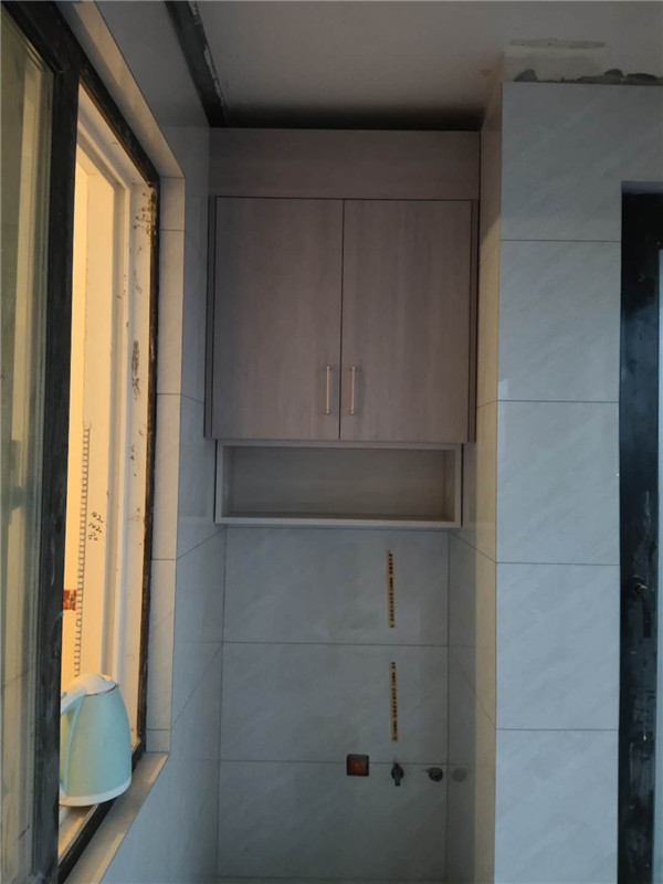 陽臺的吊柜,高柜,活動層板孔塞,防塵角都安排上了,后期打理起來也比較方便。