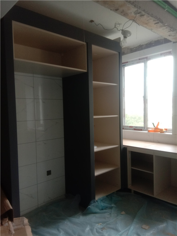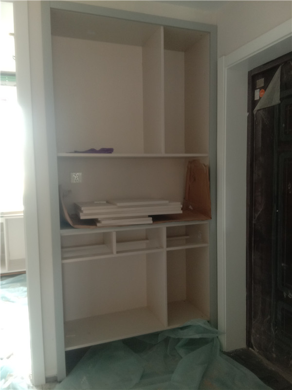 安裝柜子啦,灰玻門板也裝上去了,后期還要再去一次裝別的門板和臺面,期待一下裝完效果吧,業(yè)主家衣柜疊放區(qū)還挺多的