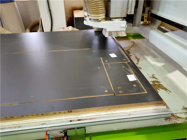 開始制作啦!專業(yè)設(shè)備裁板,沒有爆邊。板材使用平安樹實(shí)木多層板E0級(jí)制作,