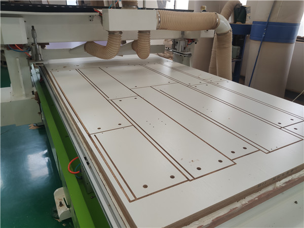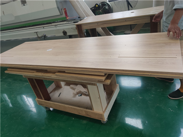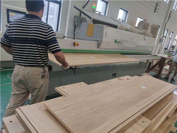 開始制作啦!專業設備裁板,板材使用平安樹實木多層板E0級制作,有高級的藍光防偽標識哦,