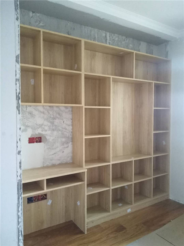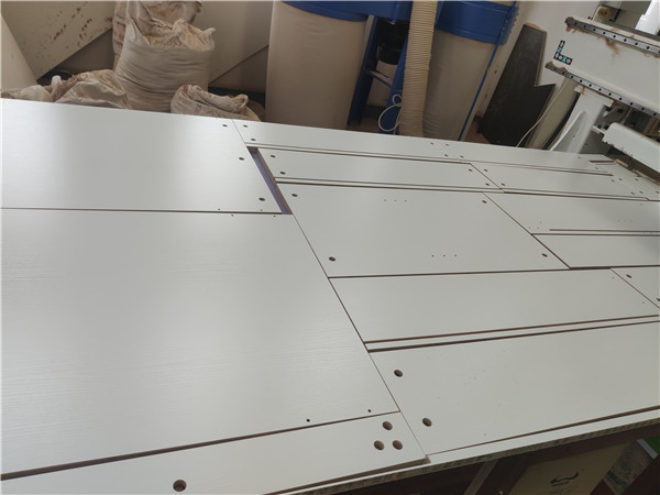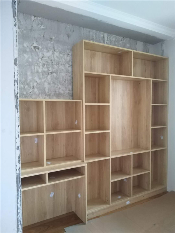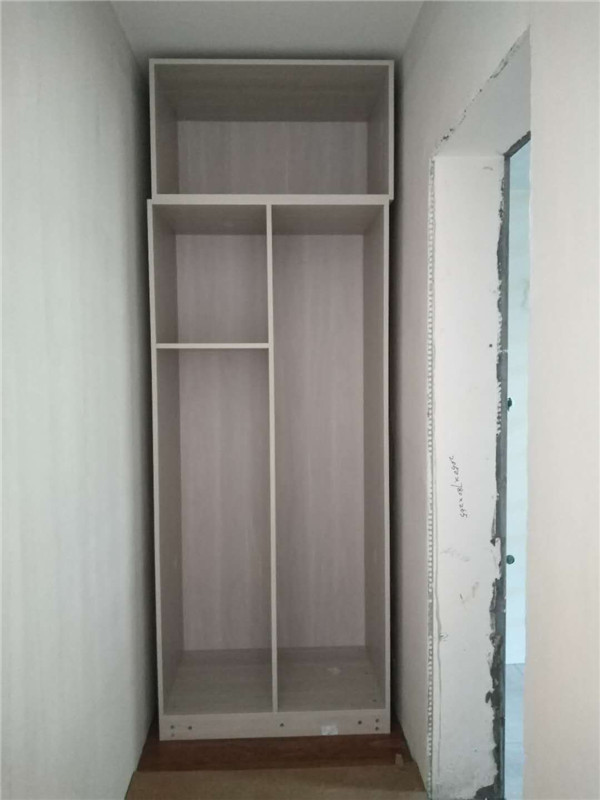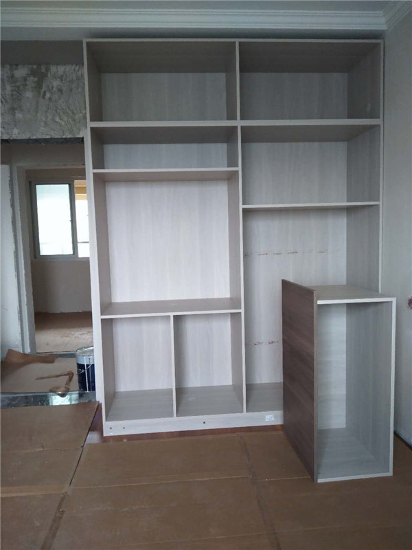 插槽背板離墻面1.7公分,防止使用時間常出現柜體發霉的現象。拆好的板師傅都整整齊齊放在墊板上,
