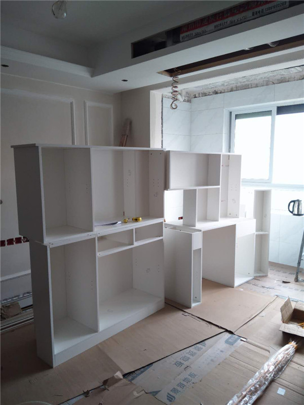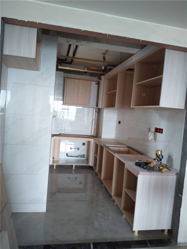 柜體拼裝的差不多了,業主家以淺色調為主,整體效果干凈清爽,等柜門安裝好在看整體效果。