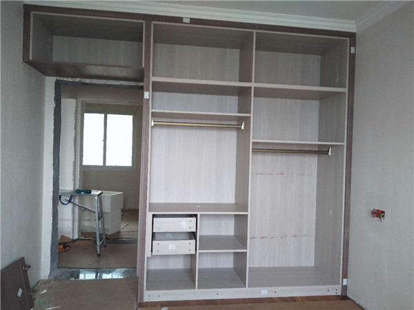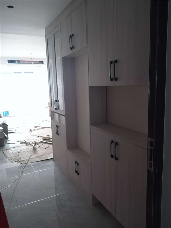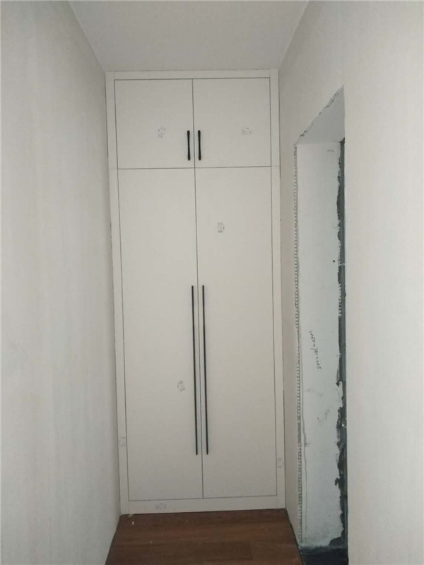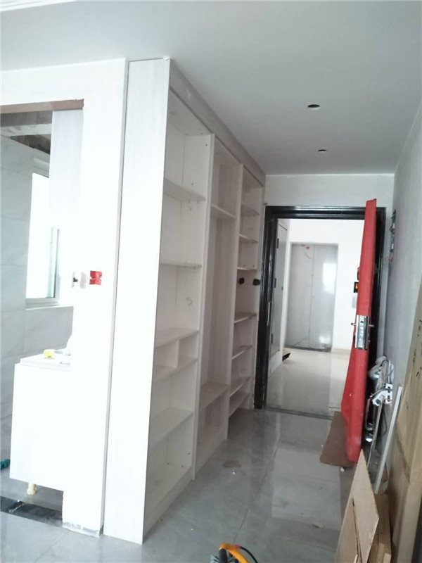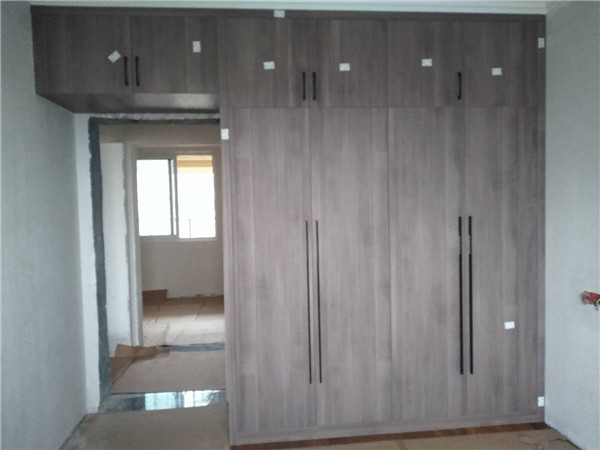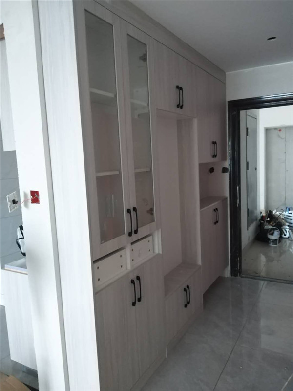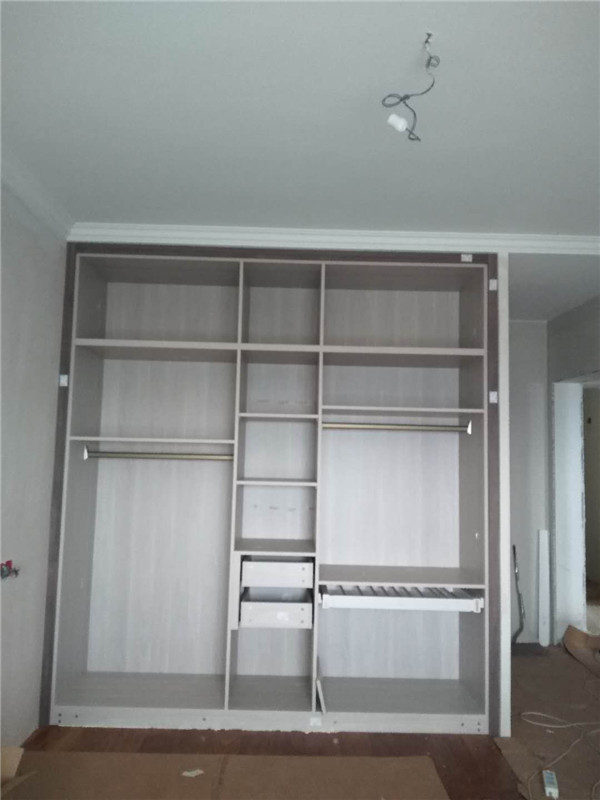 經過幾天的努力,柜子的整體效果出來了,客戶家櫥柜鞋柜以淺色調為主,清爽干凈,房間衣柜采用深色門板顯得穩重大氣。
