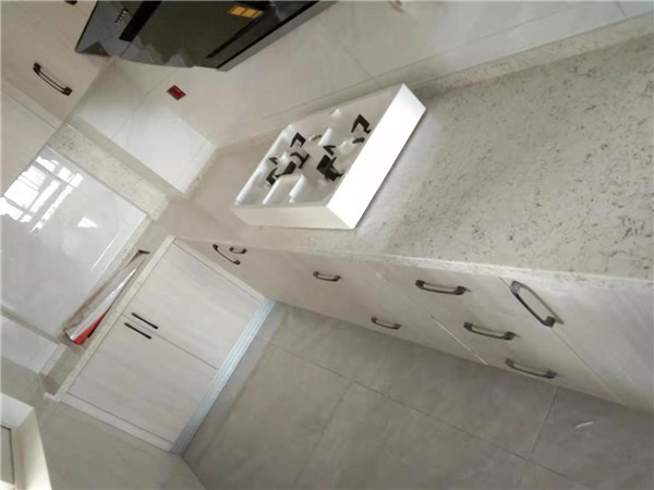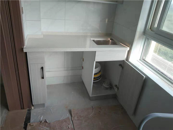 灶具、浴柜臺盆放置在現場,后期臺面安裝需用到。柜子安裝好后進入臺面測量環節,臺面量完后一個星期內送貨并安裝。