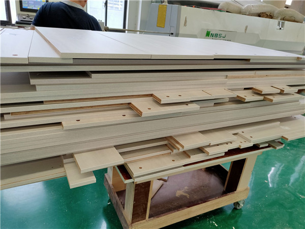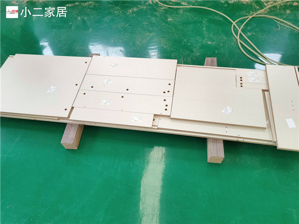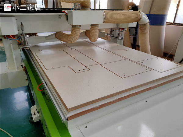 開始制作啦!專業設備裁板,板材使用平安樹實木多層板E0級制作,有高級的藍光防偽標識哦,