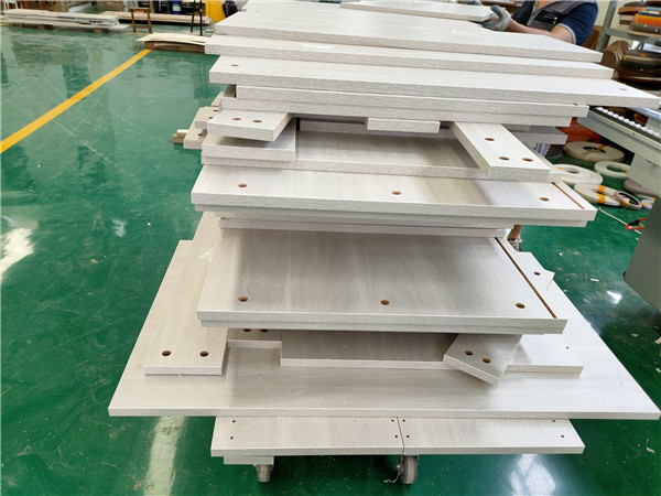 插槽背板離墻面1.7公分,防止使用時間常出現柜體發霉的現象。拆好的板師傅都整整齊齊放在墊板上,
