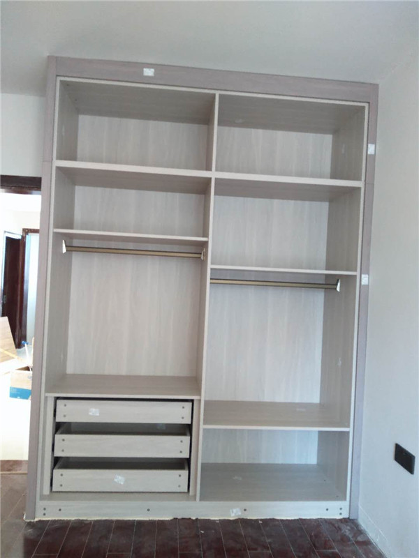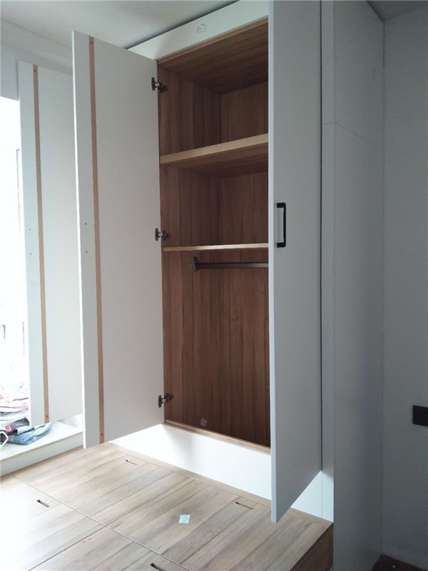 柜子的整體效果出來啦,業主家整體以淺色調為主,后期軟裝也比較好搭配,衣柜內部掛衣區,