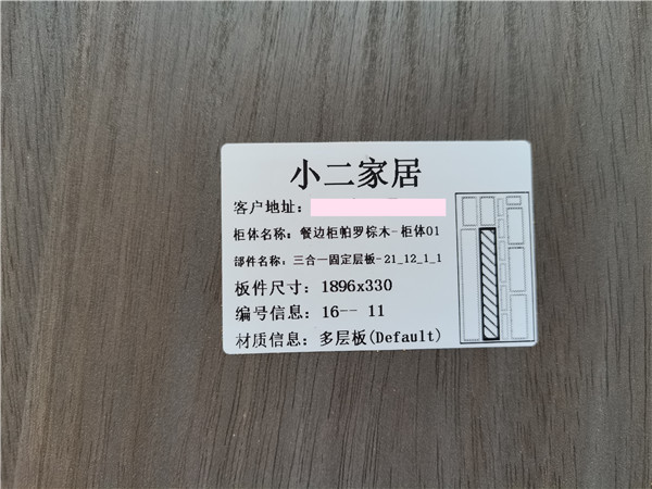我家不管大小板都是四面封邊哦!每塊板上都貼有小標簽,方便后期安裝師傅安裝。