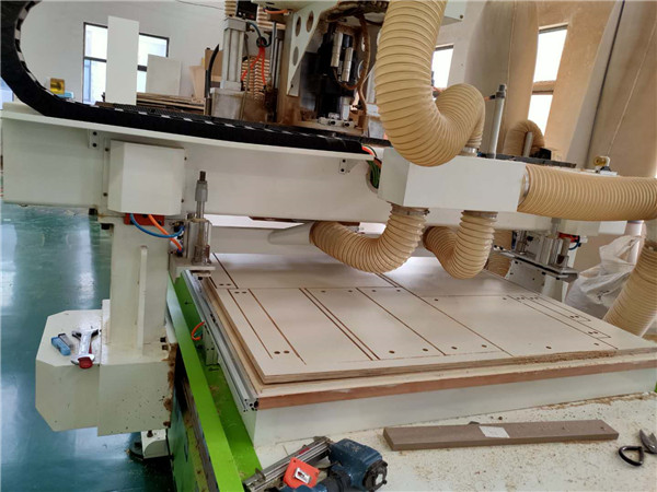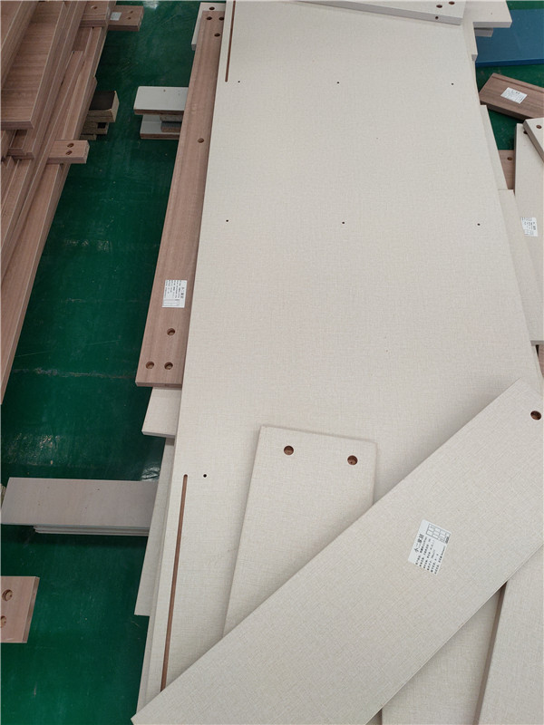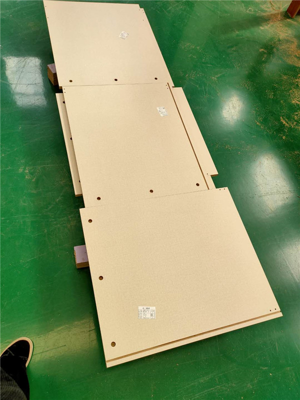 開始制作啦!專業設備裁板,板材使用平安樹實木多層板E0級制作,有高級的藍光防偽標識哦,邊口都是直的,沒有爆邊的情況,