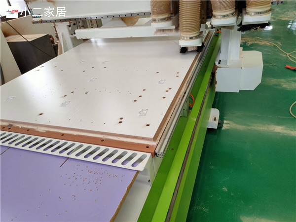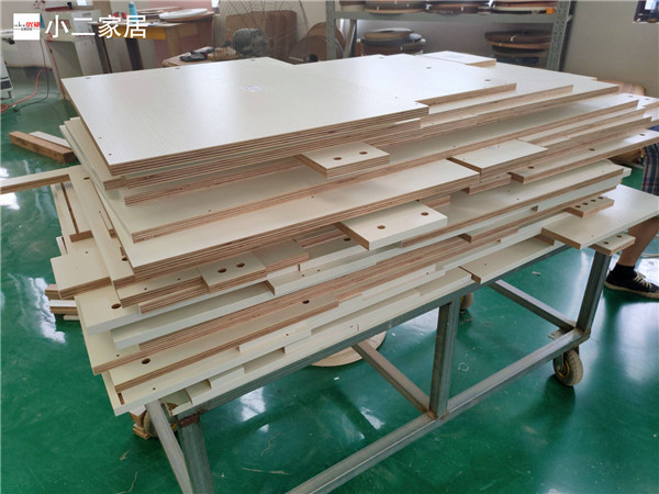 開始制作啦!專業設備裁板,板材使用平安樹實木多層板E0級制作,有高級的藍光防偽標識哦,