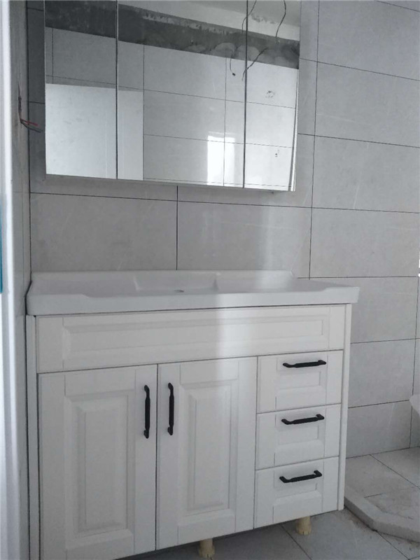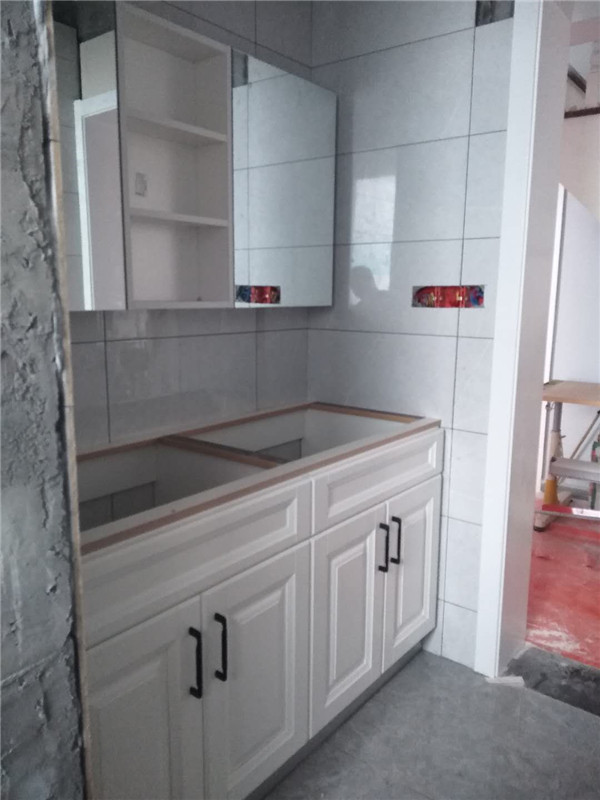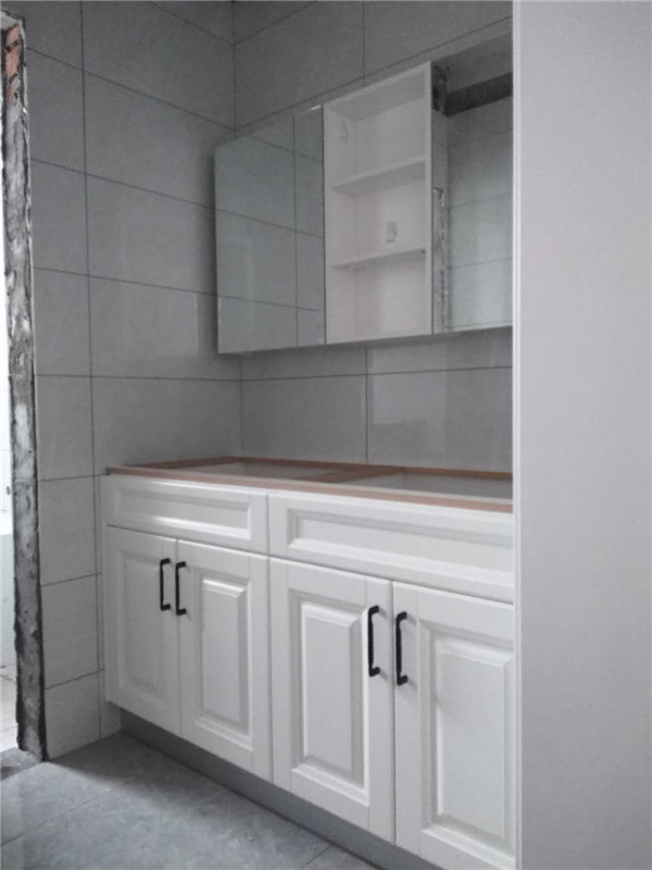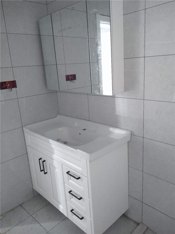 業主家內衛衛浴柜采用的是一體盆,后面洗漱的時候不用擔心水沾出來了。