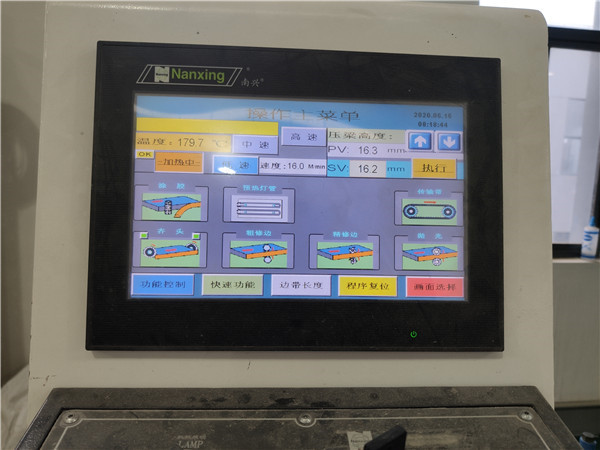 膠水采用美國波士熱熔顆粒膠,夏天溫度比較高,當設備溫度達到160℃就好開始封邊了。我家不管大小板都是四面封邊哦!