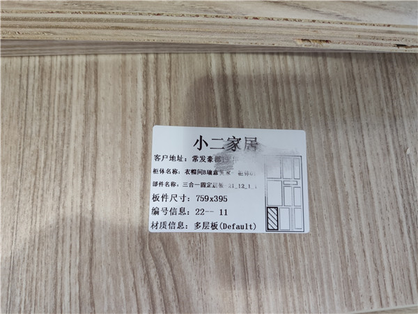 每塊板上都貼有小標簽,方便后期安裝師傅安裝,封邊條上都帶有“優端”logo的哦!方便后期售后服務。