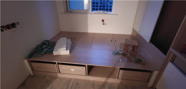 柜體基本拼裝完畢了,原木色搭配白色自然清爽,簡約大方。