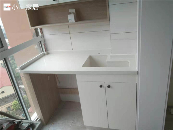 陽臺盆太小買不到合適的,采用的是石英石水槽,顏值也是高的