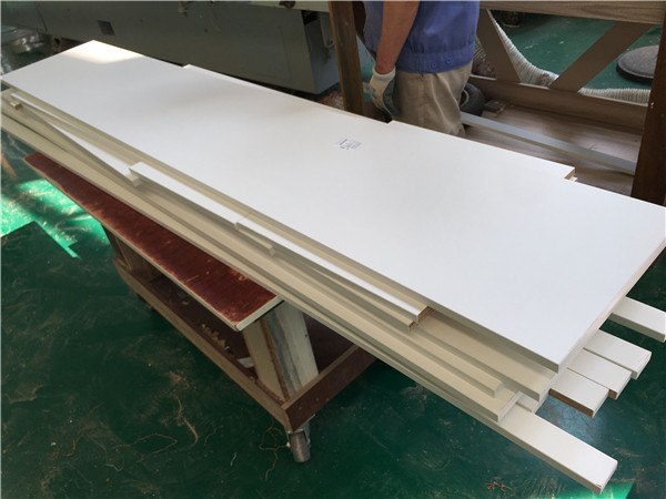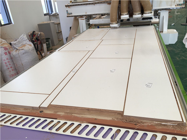 開始制作啦!專業設備裁板,板材使用平安樹實木多層板E0級制作,有高級的藍光防偽標識哦,邊口都是直的,沒有爆邊的情況,