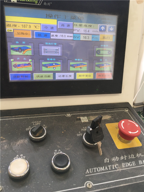 膠水采用美國波士熱熔顆粒膠,當設備溫度達到180℃以上就好開始封邊了。我家不管大小板都是四面封邊哦!