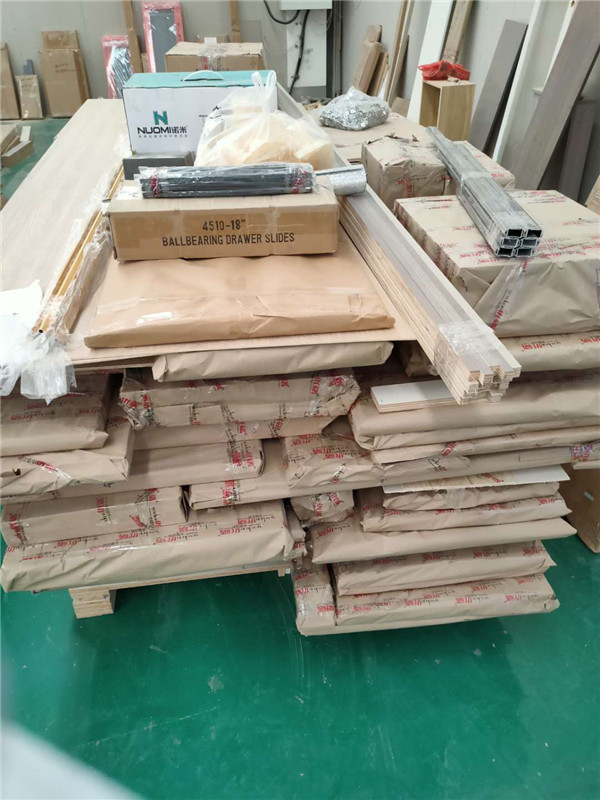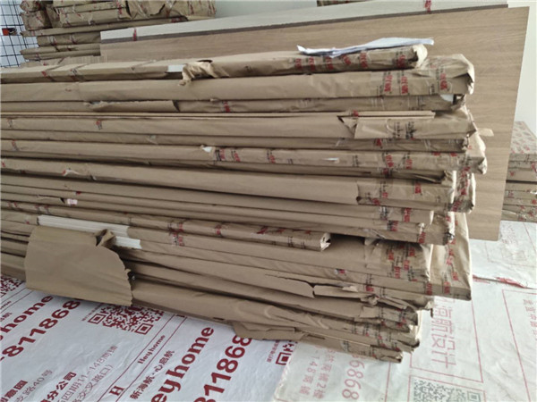 我家柜子每塊板都是整個打包起來的,以防運輸過程中劃傷或者磕碰到,跟板材下面墊